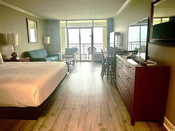 Have a look at this beautiful oceanfront efficiency condo at the extremely popular and highly rated Dunes Village Resort! The unit shows beautifully with all of the necessary upgrades for renters or your own personal use. Includes a king bed, a queen sleeper-sofa, a full galley kitchen, flat screen TV's, LVP flooring with tile in the bathroom along with a shower/tub combo, and an outdoor balcony with beach and resort views. The resort features a very substantial indoor water park including a 250' Lazy River, multiple water slides, a very large swimming pool, a hot tub, and more. Outdoors, you'll find substantial water amenities as well as over 600 linear feet of ocean front beach. The resort also has a full-service restaurant, full-service spa, Starbucks, tennis courts, basketball, and an arcade. Outside the resort you will find nearby attractions such as Broadway At The Beach, the Myrtle Beach Boardwalk, Restaurant Row, go-cart parks, and numerous other attractions to keep the family happy! The HOA Fee includes water/sewer, electricity, internet, cable TV, trash, all common area costs, plus building insurance and HO-6 unit contents insurance. All information is deemed correct, but it is the responsibility of the buyer and their agent to verify all information.
