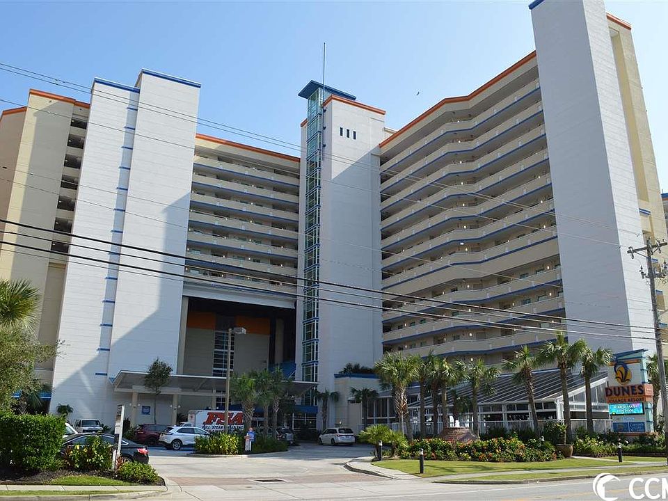 Direct oceanfront deluxe 1BR in Dunes Village. Top floor penthouse! Great view of the ocean and coastline from the balcony and living room of this high floor condo. Perfect second home with fantastic vacation rental income history. Fully furnished, accessorized and nicely appointed. Full kitchen, washer/dryer. Granite counter-tops in kitchen and baths. New LVP flooring and other recent upgrades. We will add interior pictures when we are able to gain access between rental guests. Fantastic income producer through the superb onsite rental management although owners are not required to use them. Dunes Village Resort is one of the Grand Stand’s most impressive resorts, boasting the most substantial indoor water park ever built in the area –over 30,000 SF in its combined phases. Indoor water attractions include a 250 FT lazy river, multiple indoor water slides, massive swimming pool with water volleyball and basketball, hot tubs, kiddie pools and more. There are also extensive oceanfront outdoor water amenities as well along the 600 plus linear feet of beach. Other Dunes Village features include a full-service restaurant, a coffee shop, an arcade, tennis and basketball courts onsite, a fitness center, a seasonal poolside café and Tiki bar, a gift shop and an attractive check-in lobby. Dunes Village is located in an upscale area just north of Myrtle Beach’s famed Golden Mile, a little over a mile from the downtown hotel area. Broadway at the Beach, The Carolina Opry, The Myrtle Beach Boardwalk, Restaurant Row and the area's other many attractions are just a few minutes away. The HOA fee includes water/sewer, unit electric, cable, internet and telephone, as well as building insurance and HO6 contents insurance. All information is deemed correct, but it is the responsibility of the buyers and their agent to verify all information.