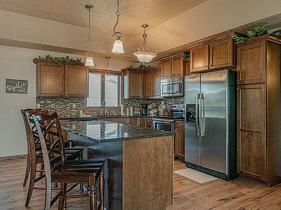 Welcome to this gorgeous home located in convenient N. Bismarck location. Offering up the perfect family setting, this charming home boasts a 4 bed/3 bath open floor plan, a spacious garage and a corner lot with fully fenced yard. The main floor features a beautiful kitchen boasting several newer upgrades including granite countertops, gorgeous backsplash accents along with a stunning coffered ceiling. The kitchen also offers a roomy island counter area for the whole family to enjoy. It is easy to admire the inviting and open floor plan of the main living area, including the living, dining and kitchen areas with recently upgraded floorings. On the main, you will also find the master suite, featuring a good sized walk in closet and full bath, as well as an additional bedroom and full bath. Make way to lower level and you will find a spacious family room fit to entertain, with plenty of space, a fireplace, and updated flooring. The lower level also offers a large full size bath and laundry combo, along with 2 additional good-sized bedrooms. The garage features 3 stalls and plenty of room to organize your things. Outside you will find a fully fenced yard, nice landscaping and a location close to schools, shopping and dining. The home's roof also features newer class 4 shingles. Don't miss out on the opportunity to call this well-cared for, conveniently-located home your own. Owner/ Related to agent(s). Showings starting June 14th