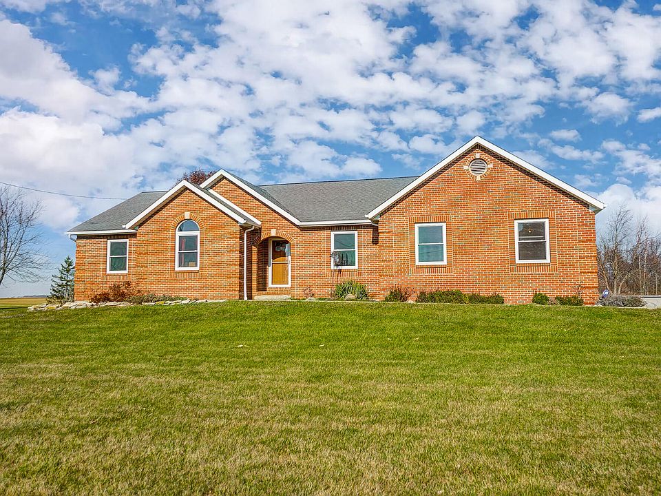 Country living is calling you. This well-maintained custom-built brick and vinyl ranch on 5 acres has so much to offer. Inside you will find an open floor plan with vaulted ceilings, 3 bedrooms, 3 full baths, main-level laundry, office space, and beautiful brick surrounding the gas fireplace in the living room. The full basement has a wood-burning stove and is ready for your imagination. The massive backyard has a two-level concrete patio, an above-ground swimming pool, and some woods. An asphalt drive connects the side load two-car garage with the 32 x 48 building which has electric and a wood-burning stove. New furnace and AC in 2019, New Windows in 2017. Come see all this home has to offer.