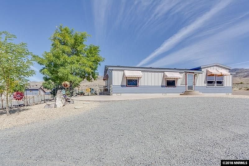 Got to see everything to believe it! Beautifully updated 2,100 sq. ft. one level home with low VOC paint & flooring, solid surface counters, ash cabinets, and large shower & separate soaking tub in master bath. Enormous poured concrete construction garage with 3 single car doors plus 10 ft RV door (RV space is 28 ft deep), plumbed with drain; including 800 sq ft for mother-in-law/generational living; plus a separate motorcycle garage for two bikes, or tractor garage. New siding and roof on all outbuildings. 1/4 mi to paved road,that includes district school busing, and road maintenance with snow removal for $300/year from the Palomino Valley GID.