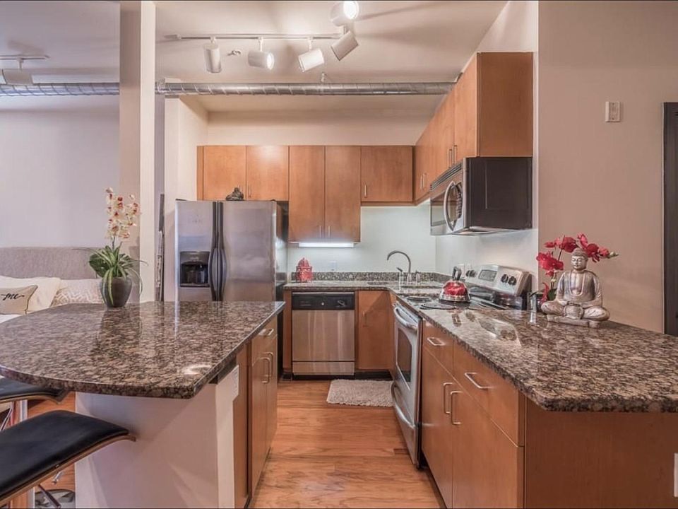 Freshly Painted Studio Condo with Hardwood Floors, Stainless Steel Appliances, Granite Countertops and Island. Upright Washer and Dryer Combo in the unit. Building is located directly across from the Chamblee MARTA station. Restaurants , Bars, Shopping all within walking distance. Secure Parking Garage with assigned Parking Space. One year lease required with a last months security deposit. Water Sewer and Electricity will need to be transferred to the lease holder.
