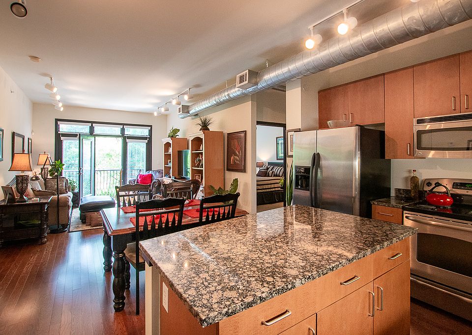 Fabulous top floor loft in popular Lofts at Chamblee complex! Great roommate plan w/large BR's BA's & walk-in closets. Island kitchen w/granite counters & SS appls. Custom blinds. HVAC system-3 yrs old. Custom screen door to balcony. Hardwood flrs. Unit is in move-in condition! Awesome amenities package includes; pool, gym, rec rm, bus ctr, rooftop pavilion & tennis court. One block from Chamblee Marta station. Walk to shops & restaurants! Come live in high growth Chamblee!