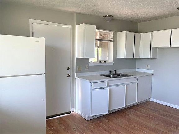 Bright single-level brick duplex with a spacious living room and modern kitchen with white cabinetry. Two roomy bedrooms with ample storage, full bath with updated vanity, washer/dryer hookups, carport, and partially fenced backyard. Freshly painted for a clean, modern lookcomfortable, convenient living in a great Roy location!