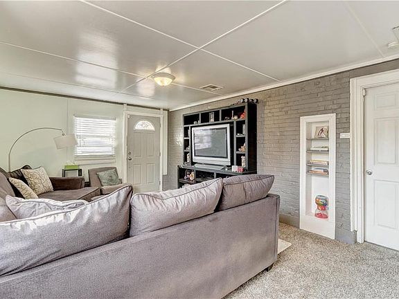 Adorable Updated Home! Two Spacious Living Areas! Updated Kitchen with New Countertops~ Stainless Steel Gas Stove! Front Living Room features wood Floors! Large master Bedroom with Ceiling Fan! Faux Wood Blinds throughout! Secondary Bedrooms are Spacious with Ceiling Fans and Faux Wood Blinds! Updated Main Bathroom with NEWER Tiled Shower/bath. Two Car Garage with (10-12) Person Storm Shelter! Backyard features DOUBLE GATE and Large Covered Porch!~ Welcome Home!