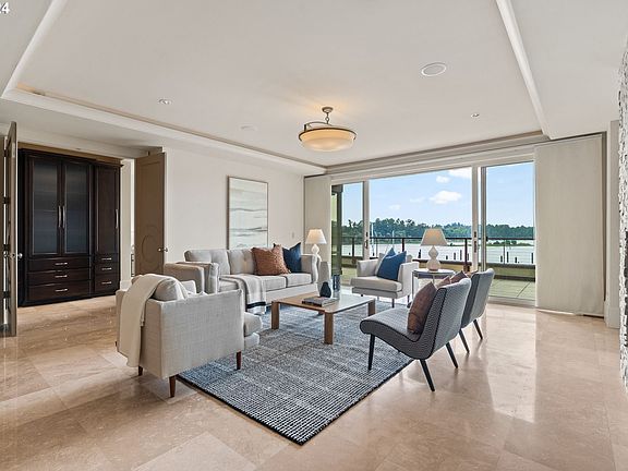 Dreaming of living in a river front home? This is it! Time to wake up to a glorious sunrise every morning! Experience the picturesque landscape surrounded by the water from this classic and comfortable condo. Appreciate this luxurious space with open concept of living, dining, kitchen and breakfast nook with functional floor plan that flows to the balcony space for outdoor entertaining. For morning and evening relaxation, the primary suite that faces the riverfront is a perfect place to calm your soul. At the opposite end, a second ensuite for privacy and separation with double walk-in closets. Additional flex space can be in-home office/de, media or hobby room. Overlooking the marina is a wonderful place to gather with friends and family to watch the parade of boats with a festival of lights. Have a boat or want to have one? Look at your boat everyday as this unit comes with a boat slip right in front of the unit. Ideally situated in John Landing, enjoy the trails along the water for you to explore from Willamette Park, Sellwood and South Waterfront. Truly a pleasure to live here, make this your dream come true!
