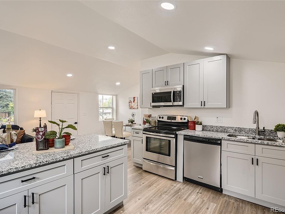 Entire house has gone through a complete remodel - recess lighting, vaulted ceilings, LVP flooring, paint, bathrooms, countertops, landscaped backyard. Easy access to Highway 85, Riverpoint Shopping Center, restaurants, libraries, golfing, and more. Cornerstone Park is your neighbor or swing by Pirate's Cove in the summer! You are just minutes away from Downtown Littleton and all that it offers!
