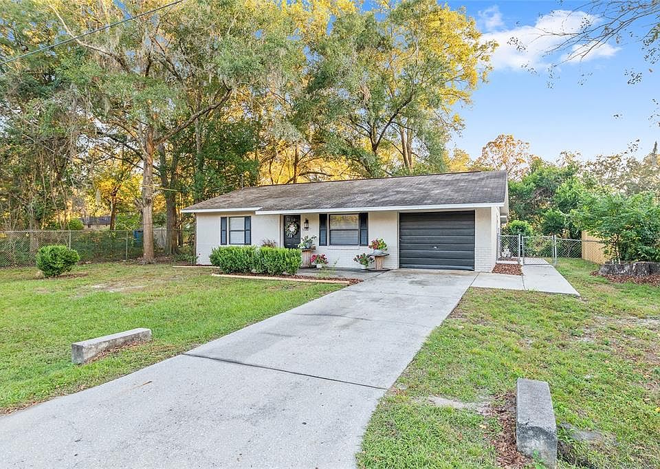 Beautifully refreshed 3-bedroom home in the heart of Belleview. This block-and-stucco gem has been thoughtfully updated throughout, offering a bright and stylish interior that’s truly move-in ready. Inside you'll find brand-new luxury vinyl flooring, a tastefully updated kitchen with stainless steel appliances, stone countertops, and a clean, modern backsplash. Converted garage space now shines as a comfortable third bedroom or flex living area, complete with its own separate entrance — ideal for guests, multi-gen needs, or creative use. Bathroom features an elegantly tiled shower, adding that extra touch of spa-like appeal. A new roof is scheduled, giving the next owner peace of mind for years to come. Out back, enjoy the screened rear porch, a surprisingly serene spot for morning coffee or evening unwinding. The fully fenced backyard keeps pets, privacy, and practicality all in check. Located right in the city of Belleview, this home puts you just minutes from shopping, dining, schools, and everyday essentials. Beautiful updates. Prime location. Easy living. This one hits all the sweet spots.