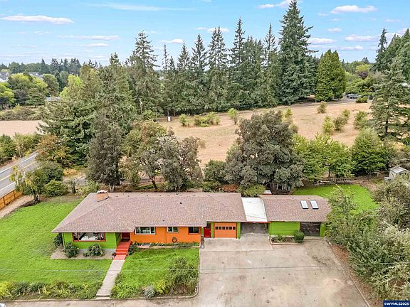 Countryside living, lovingly restored mid-century home, updated for today's modern lifestyle. Original woodwork, LVP flooring on the main level, updated electrical, lighting, appliances, bathroom & kitchen remodels, many built-ins for function and storage. New roofs in 2025, newly refurbished light & bright basement and studio flex spaces. New furnace, heat pump, HWH, all new interior and exterior paint. Luxuriant mature landscaping surrounds charming fairy glade, fruit orchard, white clover lawn, gardens& Stunning territorial views from every window. This home is surrounded on three sides by open space, pasture, hay fields, and a small private wildlife refuge. Located just outside Corvallis city limits, close to shopping, medical, schools, transit lines, trails, and just minutes to OSU. The driveway area can accommodate 8-10 additional vehicle and/or RV parking.Beautiful main bath remodel featuring tile and marble, along with new elements in the second bath. New roof, gutters, drainage system, electric panel, furnace and heat pump, air conditioning, water heater, sump pump with battery backup. Updated lighting in the home, waterproofed basement flex space, and studio. Fresh interior and exterior paint, wood-grain LVP flooring. New cedar fencing on the East side of the property. And the west side of the home includes "the grove" of fruit trees for casual outdoor dining. This home is truly a MUST VISIT and experience all it has to offer.