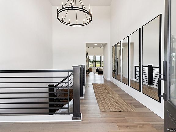 - Description: 16 Foot Ceilings, Fireplace With Natural Stone Surround, Beautiful Chandelier And Andersen Black Framed Windows Throughout