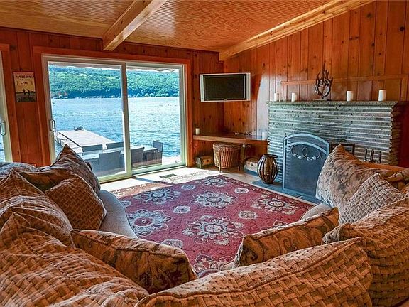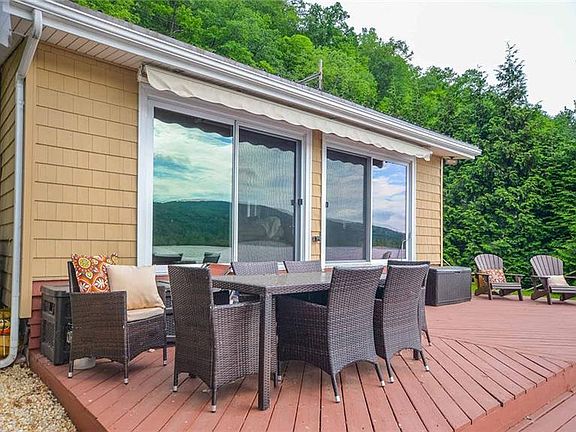 What an amazing price for Canandaigua Lake. Beautiful cottage with updates galore. Updated kitchen with center breakfast bar housing the gas oven. Tremendous cupboard and countertop space. The kitchen is open to the dining area and allows wonderful entertaining opportunities. The large living room has ceiling to floor windows allowing for an expansive view of the lake and a beautiful stone fireplace for those nights with a bit of a chill. A full bath down is great when coming in from the water. Upstairs you will find 3 bedrooms and 1 half bath. Walk out to the water on this completely level lakefront and get a look at the amazing view of the Bristol Hills. The south end of Canandaigua is known for this hilly warm environment as well as spectacular bass, perch and crappie fishing!