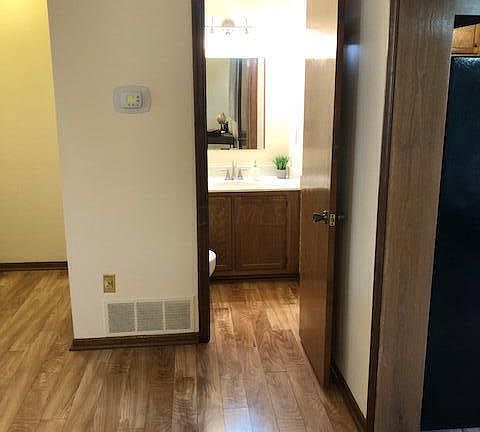 Entry level includes ~21'*16' great room, 9'*20' kitchen with eating area, access to deck, and half bath. Upstairs is 2 huge bedrooms with lots of closet space and 1.5 bathes.