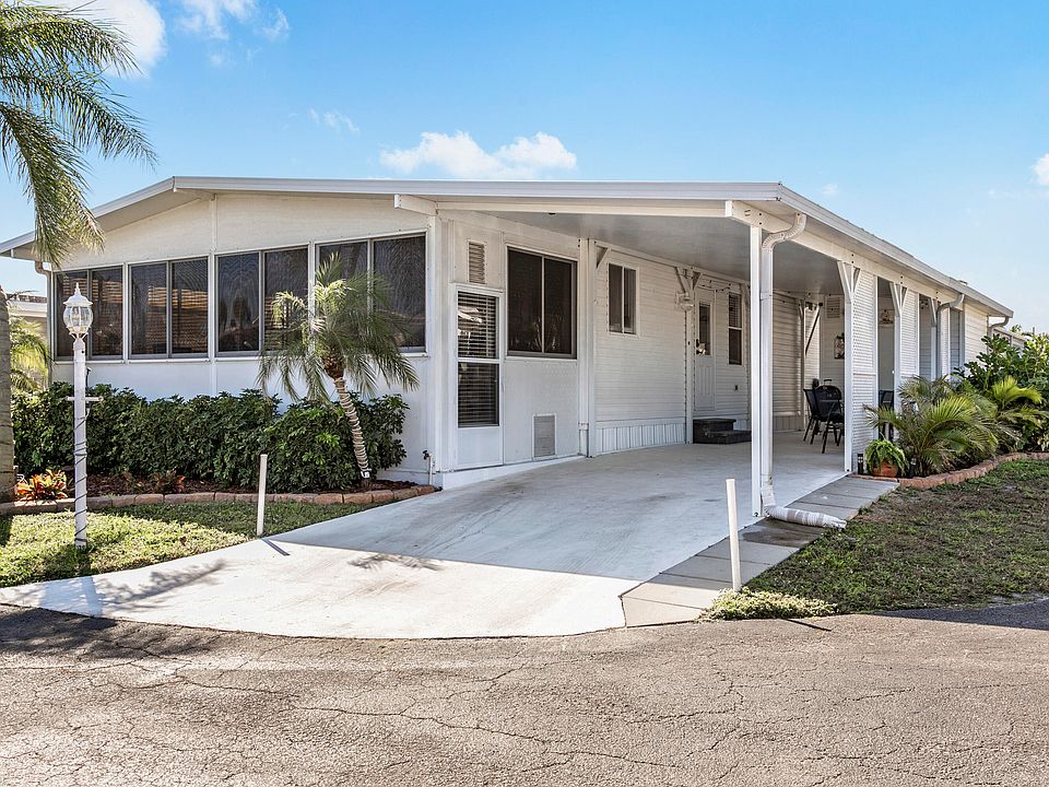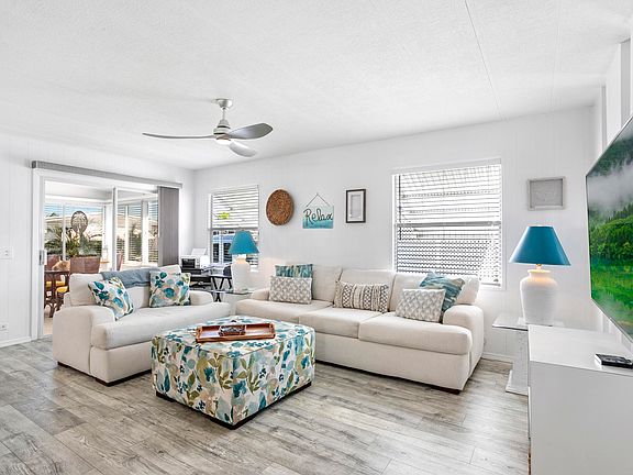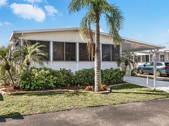 Lovely 2 Bedroom 2 Bathroom completely furnished home in Desirable 55+ Manned Gated Community. Home has Spacious kitchen with Breakfast Bar that opens to the living room and formal dining room. Large Master Bedroom with spacious closet and recently remodeled bathroom. New Step Shower, Dual Sinks, Vanity, Lights and Mirrors. Formal Dining Room with built in Buffet and Cabinets. Kitchen has plenty of cabinet space and pantry. Guest Bathroom has also been remodeled. New Tub enclosure, new vanity, sink & lighting. All light fixtures and fans have been replaced. Vinyl flooring throughout and freshly painted. Enjoy your East Facing Florida Room. Open the windows for that morning breeze. Long Driveway and Shed with Washer and Dryer. Nice location at the end of the cul de sac. Active adult community with low monthly fee. Activities include, Bingo, Cards, Dances, Pot Luck dinners, shuffleboard, heated pools, Billiards and so much more. Community is located minutes to the beautiful beaches and plenty of shopping and dining.