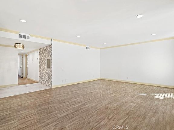 Step into a light-filled, airy living room that flows effortlessly into the dining area—perfect for entertaining. Glass doors open to a large, private patio, ideal for outdoor dining or creating your own tranquil retreat.The beautifully updated interior boasts: Brand-new flooring throughout, Elegant crown molding, Fresh paint, and recessed lighting.Stylish new fixtures and finishes