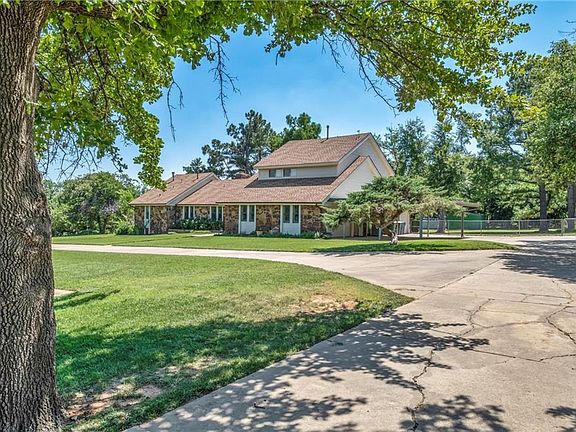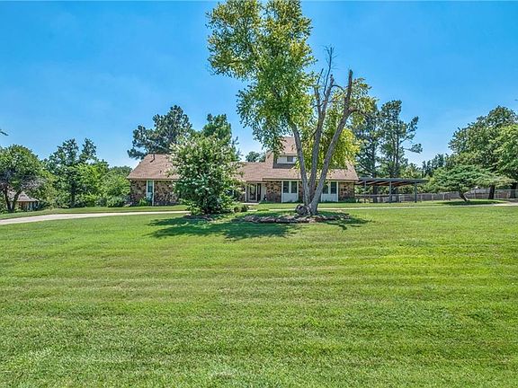Welcome to this bright and spacious home located in Northeast Edmond. Nestled towards the end of a quiet cul-de-sac on almost 1 acre of beautiful land, you will find a 1.5 story home complete with 3 bedrooms, 2 full baths and 2 half baths. As you enter the home, you are greeted with an open living space, featuring vaulted ceilings with wood beams and a gorgeous gas fireplace that can be enjoyed from both sides as the study is located on the opposite side. Right off the living is a dining or extended living room. Around the corner you'll find the nicely updated kitchen and dining area with lots of storage and natural light. This home boasts a large primary bedroom with a large closet. The 2 upstairs bedrooms include their own half baths that share the bathtub. As you make your way into the backyard, you will find a stunning saltwater pool with a jetted tub. This unique property has you surrounded by serene nature while just minutes from I-35. This home is a gem and won't last long!