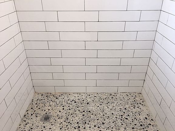 Stainless steel kitchen suiteRecessed lightingTile floors