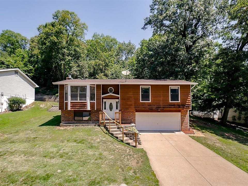 Welcome to this charming and spacious home on Darkmoor Lane, nestled in the heart of Imperial, MO and just minutes from Mastodon State Park!  As you enter, you are greeted by the beautiful leaded glass front door and spacious split level entry. leading you up to 3 bedrooms and 2 full baths, one of which is in the primary suite.  The kitchen opens up to a dining/living room combo, with plenty of room for entertaining. Walk out the patio door and see a new patio (2021) and notice a nice level fenced back yard to enjoy a BBQ or take advantage of the fire pit on those cool fall days.  Lower level has a large family room and generous sized laundry room with shelving and a two car garage.  Recent updates include:  front and rear retaining walls 2015, roof and skylights 2017, some bedroom flooring (2014 & 2018) back patio 2021 and gutters 2022. This home is ready for its new owners to move in and add their finishing touches. Don't miss the opportunity to schedule a showing today!