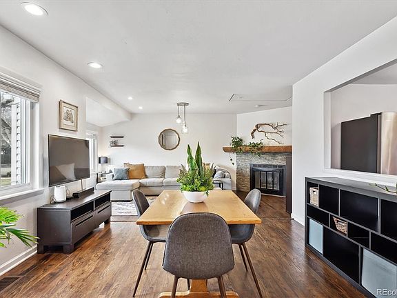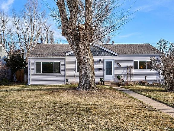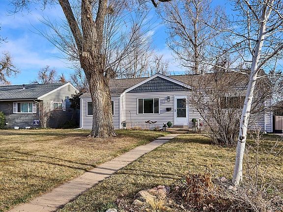 Imagine backing to the picturesque, historic, 71-mile long Highline Canal Trail. The wildlife you'll see in your backyard: owls, hawks, birds of all kinds. Exit your back gate and you can run, walk, or bike freely through the city. This handsome cottage has an enormous yard, mature vegetation, and beautiful perennial plants. The interior enjoys a beautifully remodeled kitchen with wooden cabinets, granite countertops, a stainless steel French-door fridge, and a stainless steel range. Enjoy cooking in this remarkable space -- large enough to accommodate an extra island or eat-in table. The open plan living room, dining room, and kitchen is bright and welcoming. The home has been freshly painted a bright white, and the darker hardwood floors make a lovely contrast. The living room has a charming wood-burning fireplace with a hand-hewn wooden mantle. The full bathroom is pretty with white and pale green tiles, a vanity with storage, and a medicine cabinet. The primary bedroom is quite large, and both bedrooms have ceiling fan/light fixtures. And wait until you see the laundry/mud room. This space is a rare find. Store all of your extra kitchen equipment, pet items, laundry supplies -- you name it, there's room for it. And for additional storage, two sheds are in the huge backyard. All of the windows are newer and trouble free. New hot water heater (permitted installation) in 2021. New roof (permitted installation) in 2021, as well. An exterior 220V outlet will charge your electric vehicle. This location can't be beat. Easy access to I25, Colorado Blvd, Dahlia Street. Arrive downtown or the Tech Center in less than 15 minutes. King Soopers and Sprouts are just around the corner, Whole Foods is less than 10 minutes. Yet the feel is pastoral and quiet. Mamie D Eisenhower Park is a short walk away. One floor living is easy and convenient. Come experience this attractive home today. You won't be disappointed.