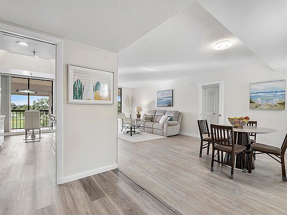 New Year. New Condo. This is your opportunity to have the most fantastic panoramic golf course view you will ever find. The west-facing screened-in terrace is about 700 sq. ft., with hurricane shutters facing the golf course and lake that is bathed in sunlight. You will enjoy a spectacular sunset every day of the week. Sit back with a glass of wine, and watch an electrifying sunset every evening of the year. This home, with its contemporary kitchen, quartz counters, wood-like vinyl flooring, updated, spacious 2 BR, 2 FB, EIK condo offers complete privacy. The unit has a newer full-size washer/dryer and large separate storage closet. It is painted throughout in neutral colors and is move- in ready. Golf and social memberships are available. Walk to pool.