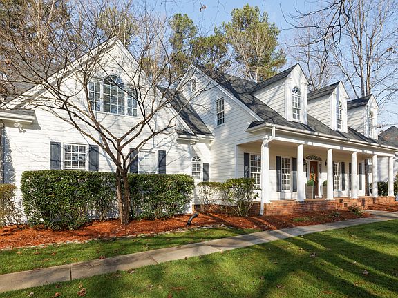 With a wide, shady front porch that invites "sitting a spell" and stellar golf course views enjoyed from the screened porch, this southern living home is well suited to its setting. Beautiful two story foyer with turned staircase opens to dining room and living room/study. The kitchen is a head turner with huge island, chef's appliances & beverage bar with sink. Stunning master w/golf course views, guest room w/en-suite bath, 2 more bedrooms & large bonus room. Updated baths & new neutral paint. Gorgeous!