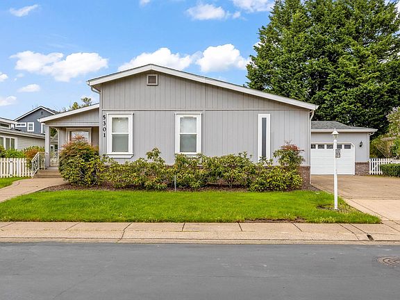 Gorgeous, Golden West manufactured home in a private, quiet, gated 55+ community on IT'S OWN LAND! Spacious 2296 SF w/ vaulted ceilings, large kitchen, formal dining area, huge owners bed & more. Kitchen features Corian counters, island, oak cabinets and plenty of natural light w/ skylight. Owners bed w/ WI closet, bath, dual sinks, WI shower & storage closet. Separate laundry w/ sink & BI features. Community amenities w/ heated indoor pool, tennis courts, clubhouse & private RV storage. Don't forget to check out the Hobby/Shop/Sunroom! Roof, HVAC, and flooring all replaced by current owner. HOA fee of $2400 due at close of escrow paid by buyer to HOA.