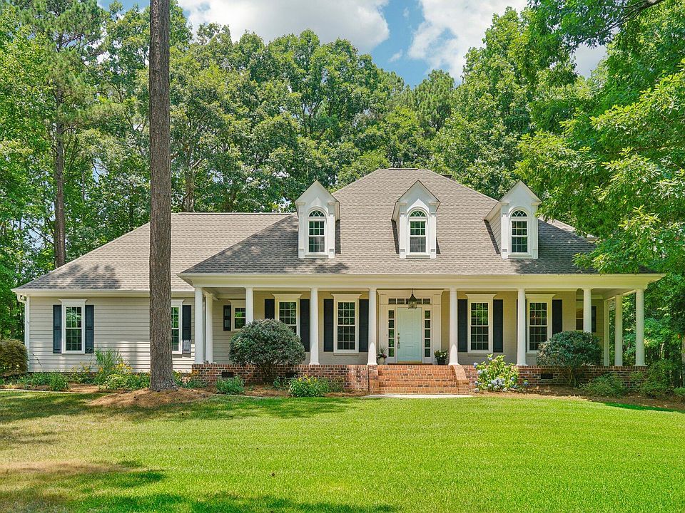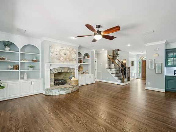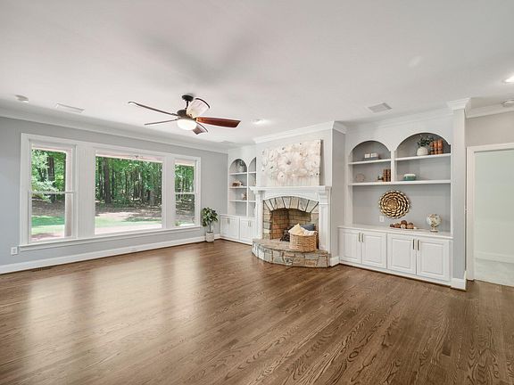Discover the beauty and tranquility of the highly sought-after Millrace community in Wake Forest with this custom home, nestled on a private, sprawling 2.36-acre lot. This exquisite residence features a first-floor owner's suite with a luxurious bath and walk-in closet. The beautifully remodeled kitchen boasts double wall ovens, a peninsula bar, and a custom island. The family room, perfect for relaxation and social gatherings, includes a stone fireplace, built-in cabinets, and a wet bar. Upstairs, you'll find three spacious bedrooms, two bathrooms, an office, and a bonus room. The seamless floorplan extends to an outdoor sanctuary complete with a covered porch, brick patio, and built-in grill, ideal for entertaining. Additional highlights include a two-car garage with an epoxy floor. Recent renovations include a new roof in 2018, new HVAC systems in 2019 and 2021, and updates to the staircase, bathrooms, and carpet in 2021. In 2023, the hardwood floors, kitchen, crawlspace encapsulation, and windows were all upgraded. This home is set in a picturesque landscape that harmoniously blends with the four spring-fed lakes and cascading waterfall of Millrace. Come and experience this stunning property for yourself.