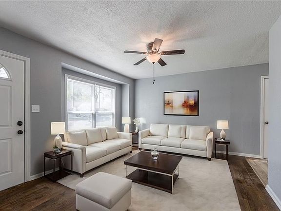 Discover comfort and convenience in this charming ranch-style residence in the heart of Kansas City, Missouri. Featuring 3 bedrooms, 1 bathroom, and a 2-car garage, this home boasts newly carpeted bedrooms for added comfort. The hardwood floors have been recently refinished with new interior and exterior paint, making this home ready for it's new owners! Step outside to your private fenced in backyard, complete with a concrete patio and storage shed. Enjoy easy access to local dining and shopping options, with a shopping center just 3 minutes away. Don’t miss out on the opportunity to make this delightful Kansas City abode your own.