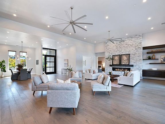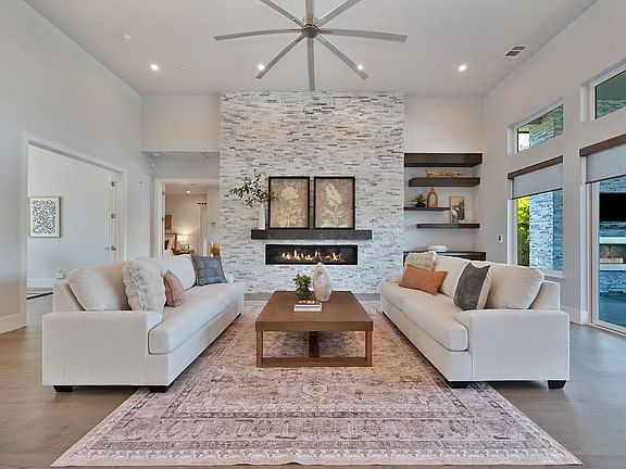 Welcome to this exceptional custom-built single-story home, where modern design meets resort-style living. Boasting a seamless open floor plan and high-end finishes throughout, this residence offers an unparalleled lifestyle of comfort and sophistication. The spacious main living area, where soaring ceilings and clean lines create an airy ambiance perfect for entertaining or relaxing. The gourmet kitchen is a chef's dream, outfitted with top-of-the-line Thermador appliances incl. a built-in fridge and sep built-in freezer large island, sleek cabinetry, and a butler's kitchen complete with a refrigerator, dishwasher, and abundant storage. The luxurious primary suite is a true retreat, featuring a private sitting area and an opulent spa-like ensuite bath with a soaking tub, double vanities, and designer finishes. Two additional generously sized bedrooms each offer their own private ensuite. A dedicated office provides flexibility as a potential bedroom, while a media room adds to the home's entertainment value. The backyard is a private paradise -an expansive covered patio with fireplace, a sparkling pool and spa, and a fully equipped outdoor kitchen featuring a BBQ, sink, icemaker, bev fridge, and a pizza oven. Detached casita/ADU offers a fourth bedroom, bath, and kitchenette