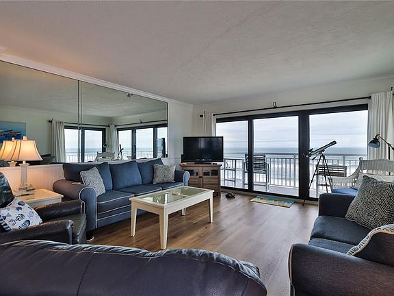 December 2025, available for month, week, or 3 day weekend! Stay here for your Beautiful panoramic views of the ocean on the 7th floor facing the south end of this beautiful peninsula. Beautiful, luxury, penthouse unit at Shorehom by the Sea with a fantastic oceanfront view located on the non-driving portion of the beach. This complex includes two buildings that have both gone under full renovations. The condo provides you every beach supply and bikes you will need so you don't have to drag it all from home! There is also a desk for you to use in master suite if you must work on vacation. A beautiful view of the ocean and beach greets you. A large flat screen cable TV with DVD is available for catching the latest movies, favorite shows, and sports. Comfortable leather recliners and sofa bed for extra sleeping in the living room. Step out onto the balcony through the brand new sliding glass doors every morning and enjoy the day with a sunrise and your cup of coffee. Enjoy a beautiful sunrise every morning and sit by the front door to watch a beautiful sunset with an afternoon drink. A roomy, well equipped kitchen satisfies both the gourmet cook and the quick and easy prepare. Granite counter tops are upscale and easy to maintain. The dining table expands as needed with a simple pop-up leaf. In addition to the normal range/oven and refrigerator/freezer, the kitchen has a microwave, dishwasher, garbage disposal, toaster, coffee maker, blender, crock pot, and waffle maker as well as a full set of cooking and eating utensils. The condo is beautifully decorated with chair railing and bead board. The master bedroom with its own view of the ocean has a king sized bed and large flat screen TV. A large walk-in closet is a welcome asset. The master bath features a Jacuzzi tub with shower and granite counter top vanity. The 2nd bedroom has a double bed and twin bed. It also features a flat screen TV with DVD player. The 2nd bath features a shower and granite counter top vanity. Large, heated (Scheduled by onsite management), swimming pool awaits you! Shuffle boards, chairs and tables by the pool, grills for those tasty steaks, boat trailer and motorcycle parking available and racks to store your kayaks, surfboards, and SUP boards. The balcony is an inviting place to entertain. It's also a great place to sunbathe or relax with a drink and snack or a good book. There's a great view of the activity on the beach. Finally, the top floor has only 2 condos for the penthouse!! You will have so much privacy! The storage unit has bikes, beach chairs, umbrella, beach toys, and beach games all for you to enjoy a big enough to be a one car garage!! No need to haul any beach supplies on your trip to the beach! Just bring your swimsuit!