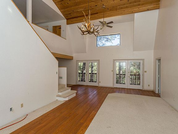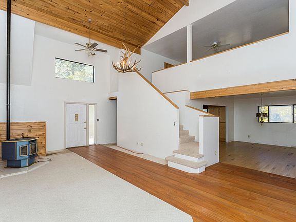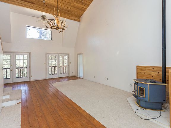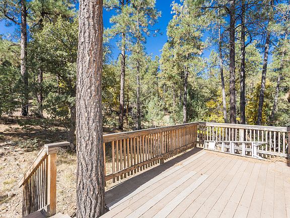 Nestled on 2 beautiful acres in the Bradshaw Mountains & bordering national forest, this tree surrounded home provides privacy & seclusion for a full-time residence or a wonderful opportunity for a vacation/second home with the added convenience of being less than 8 miles from dining/shopping & less than 11 miles from downtown Prescott & Courthouse Plaza! The front door opens to an open spacious living room that boasts abundant natural light, stunning forest views, direct access to the rear covered redwood deck, towering vaulted T & G wood ceiling, pellet stove, dual ceiling fans, adjacent convenient half bath & wood flooring in the high traffic area.CONTINUE