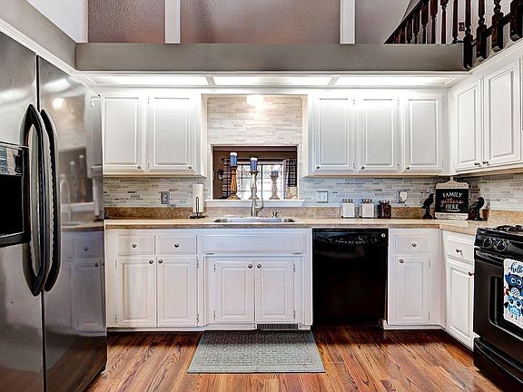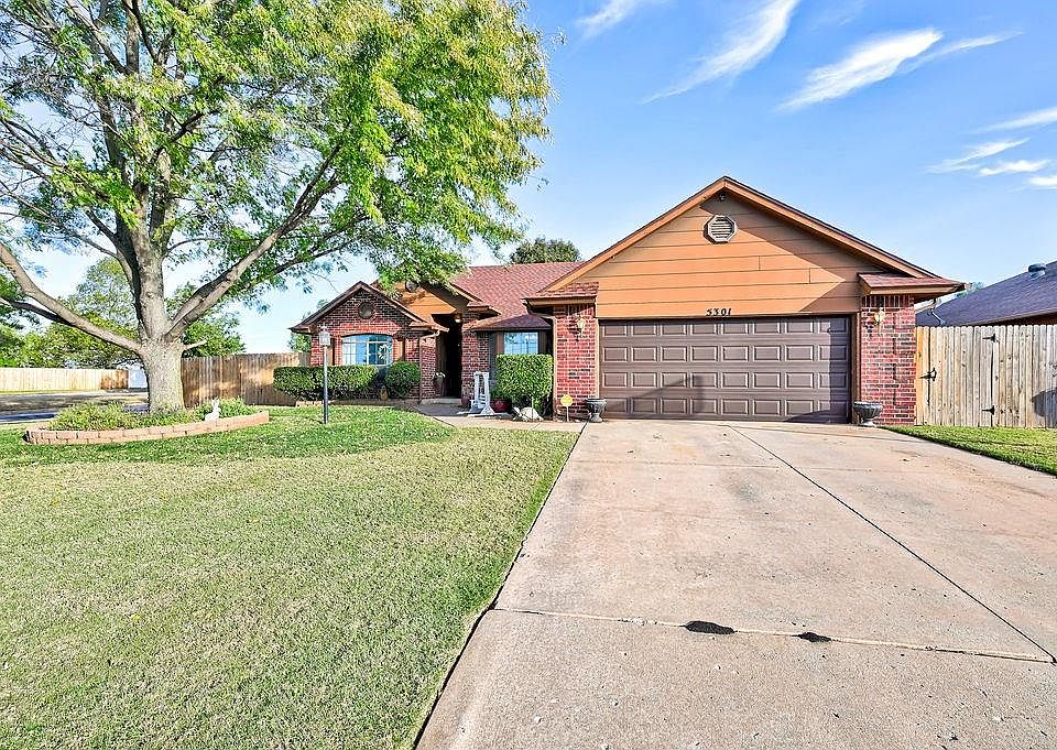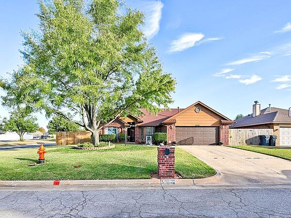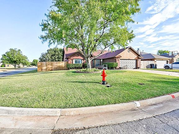 Gorgeous home on a desirable corner lot with mature trees. High vaulted ceilings. Freshly painted. Storm shelter in the garage. Updated kitchen with a BEAUTIFUL new back splash. This kitchen has the three B's BIG, BRIGHT & BEAUTIFUL. Three bedrooms, 2 bathrooms and two living areas. Two sides if the fence have been replaced. The LARGE second living area upstairs overlooks the kitchen and the living room. The master bedroom has a walk in closet and a jetted tub. Covered deck with great sized backyard. You don't want to miss this one!
