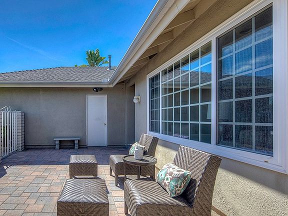 Beautifully upgraded single story home situated on a corner lot in the highly desirable city of La Palma. This updated 3-bedroom, 2-bathroom home has over 1,400 sqft of living space and offers tremendous curb appeal with a gorgeously landscaped lawn, interlocking pavers driveway, and private enclosed front courtyard. Through the front door is the spacious living room with gas fireplace, large dual-pane windows, and recessed lighting. The gorgeous kitchen is complete with stainless steel appliances, brand new Kenmore refrigerator, ample cabinet space, and walk-in pantry. The kitchen opens up to the dining area with a large sliding door which leads to the private backyard with new sod, covered seating area and plumeria trees - perfect for indoor/outdoor entertaining or simply enjoying a peaceful morning. Through the hallway is the remodeled full bathroom, and the three bedrooms which includes a spacious master suite with private remodeled en-suite bathroom and generously sized walk-in closet. Central A/C and heating are controlled with digital thermostat. Brand new carpet in all the bedrooms, freshly painted interior, upgraded electrical panel, separate laundry room, and 2-car garage with roll-up door. With its ideal location near shopping, restaurants, community centers and highway access, this house is the perfect place to call home!