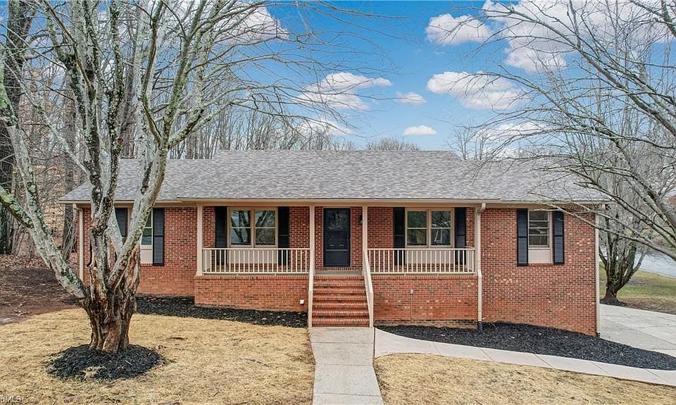 Lots of space in this 4 Bed 2.5 bath brick ranch with finished basement and oversized 2 car garage. Home has just recently been completely renovated. All new flooring, paint, updated kitchen with granite counter tops and stainless appliances. New roof 2024. Bathrooms all remodeled with new fixtures, vanities, and tile showers. Main floor features den with fireplace, large kitchen with breakfast area, formal living room and dining room. Basement offers a 31 x 27 Rec room with fireplace, bar and pool table. Oversized garage with two automatic doors offers over 700 sq ft, loads of storage cabinets and is equipped with a built-in gas heater. Sunroom on main and enclosed porch off basement offer an additional almost 500 sq ft of good usable space to be enjoyed. Concrete driveway with turnaround and covered front porch are just a few of the great features. Located conveniently to both Friendly Ave and West Market St. Offers easy access to schools, shopping, restaurants and more. No Hoa's