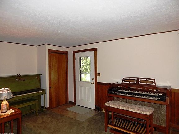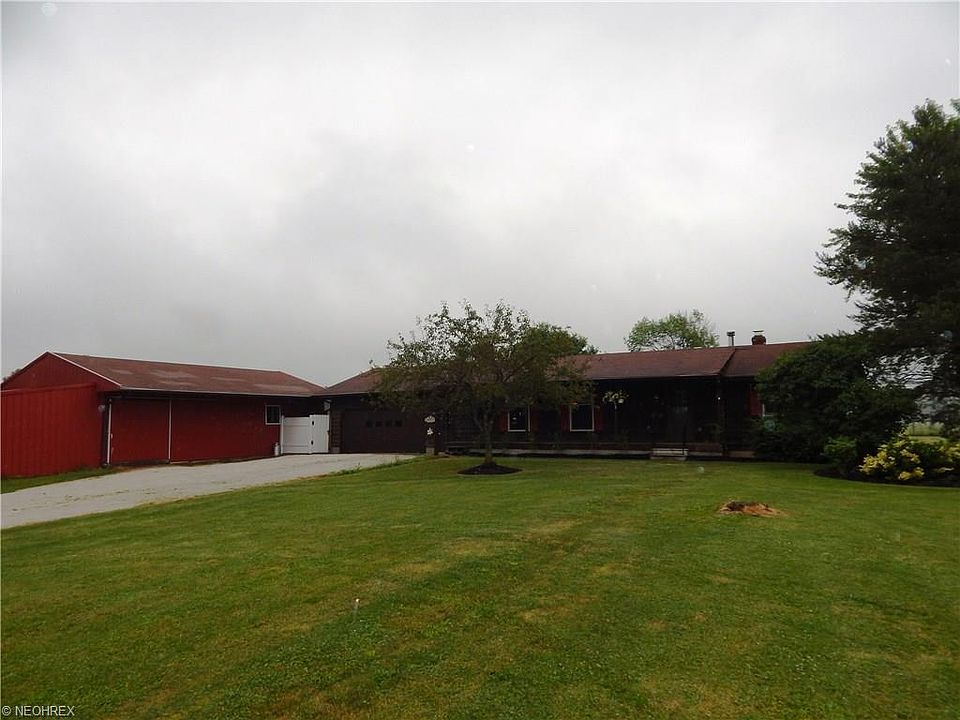 You'll appreciate this inviting front porch Ranch nestled on 4 Acres. Perfect Horse Property, 26 x 40 barn offers 4 stalls and includes water, electric, and phone. There is also a 14x40 Lean-to plus a 14x10 lean-to being used for hay storage. newer metal siding 2010. Enjoy a spacious Living Room complemented with a beautiful brick fireplace and barn beam mantle. Nice Dining Room. Comfortable eat-in Kitchen includes appliances. Extra living space is available with the finished basement complete with Family Room that features a brick fireplace. Bedroom 3 is in the finished basement along with a full shower bath, 2 storage rooms. Furnace and air in 2008. Outside you'll enjoy a decorative pond along with a regular pond. Pasture areas, 2 fenced & graveled dog runs. The house has county water but there is a cistern for the barn and outside use. The property has an apple orchard and blue berry bushes. House and barn reroofed in 2001.