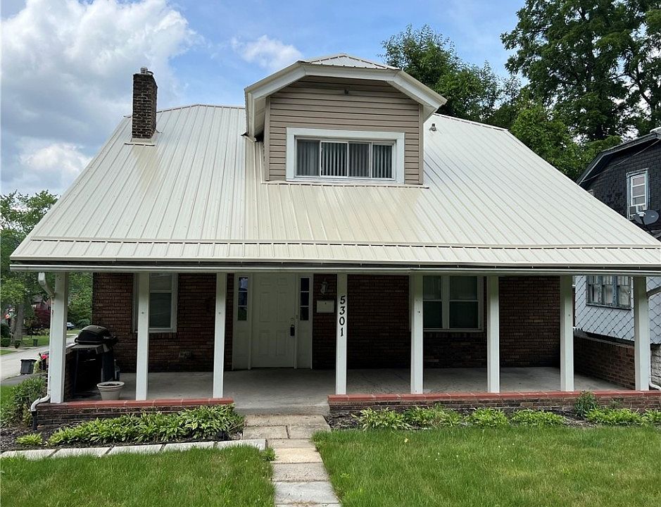Spacious cape cod style home with 4 bedrooms and 2 baths. Covered porches at front and rear. Main level offers Living Room, Family Room, Dining Room and Kitchen with access to rear deck a well as a main level bedroom with large closet and a full bath. 3 additional bedrooms on 2nd floor with full bath. Primary bedroom has vaulted ceiling, skylights, and walk-in closet. Loads of closet and storage space. Updated kitchen with ample cabinet and counter space. Vinyl plank and tile flooring throughout. Updated central air and new roof. Large basement with dedicated laundry room.