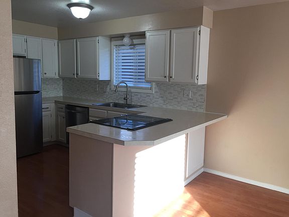 Lovely tree lined street with no homes across street! Cute, updated townhome featuring wood floors, new carpet upstairs, 2-car garage with built in storage. Bright and airy kitchen with brand new stainless steel LG refrigerator, Samsung stainless dishwasher and stove, and lots of storage. Fenced backyard with patio. Very large upstairs laundry room includes washer and dryer. Good sized bedrooms and bath. Bath has storage. Close to shopping, dining, transportation and only 10 minutes from BSU! Zillow applications accepted for prescreening only. Tenant is responsible for all utilities.