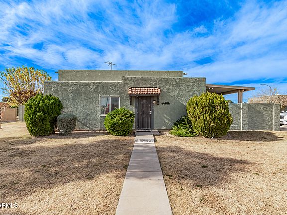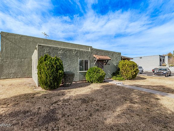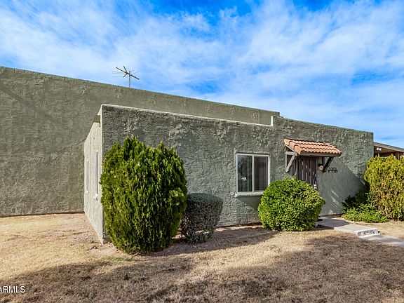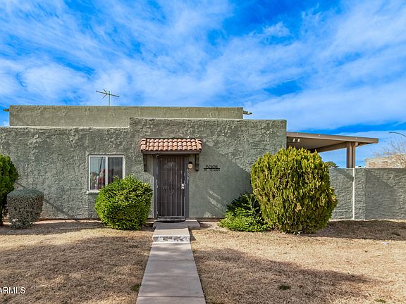 Welcome to this charming townhome in Hallcarft Villas! Discover a living/dining room with a neutral palette, durable tile flooring, and double French doors that lead to the backyard for seamless indoor-outdoor flow. The kitchen comes with flat-panel wood cabinetry for a modern feel, a walk-in pantry, and sleek stainless steel appliances. Both bedrooms feature walk-in closets, providing ample space for organizing your wardrobe. The covered patio offers a relaxing outdoor retreat complete with convenient storage for your belongings. Conveniently located close to schools, Thunderbird Hospital, bus stops, delectable restaurants, and shopping. Don't miss out on this fantastic opportunity!