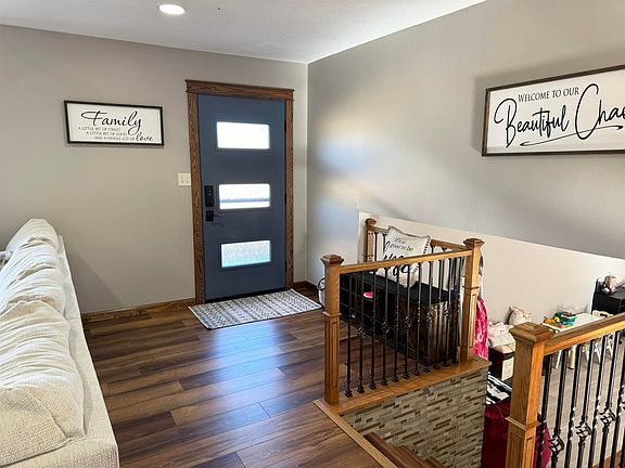 Located in a serene, rural setting, this cozy 3-bedroom, 2-bathroom home is just about 10 minutes from Norfolk. Situated on a half-acre lot, the property features a private fenced-in backyard with a covered porch, two separate patio areas, and an above-ground pool. Inside, the kitchen is a focal point with cherry wood cabinets offering plenty of storage, stainless steel appliances, a farmhouse sink, marble countertops, and a large island. The lower-level family room includes a built-in fireplace and walk-out patio. Plus, this home comes with brand-new windows throughout!