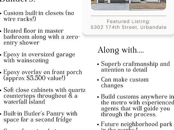 Beautiful 6 bed/3 bath (all tiled), ranch home on over a third of an acre on a private lot with a pond view! With over 4,000 Sq Ft of finishes, the quality, attention to detail, and additional upgrades are spectacular. The craftsmanship is one of a kind! The main floor features a luxury kitchen w/ quartz countertops, a waterfall island, soft close drawers/cabinets, gas stove, pot filler, high-end stainless-steel appliances, and a Butler's pantry. The main floor also features a spacious great room w/ electric fireplace, dining space, a composite covered deck, a mudroom, & 1st floor laundry. The main suite has its own bath ensuite w/ heated floors and spacious, custom built walk-in closet w/ vanity, and a zero-entry shower. 2 additional bedrooms on the main floor, and another full bath. In the walkout lower level, there are 3 bedrooms, 1 partial bath, a full bar, a spacious family room, and lots of storage space! This home also features 10 Ft. ceilings on the main floor, exterior stucco & stone, covered patio, 3 oversized-car garage with epoxy flooring, an irrigation system, and more! In the Waukee school district. Ask about closing cost credits through our preferred lender! All information obtained from Seller and public records.