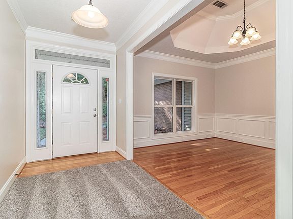 Welcome home to this gorgeous, well-maintained, brick ranch in the sought after Brandywine subdivision on 2.5 acres! Nestled in the woods, with beautiful views of Euchee Creek, you'll feel like you're in the country, but still convenient to all the amenities of town! Inside you'll find solid hardwood flooring throughout much of the main living space and brand-new carpet in the great room and bedrooms! The spacious kitchen with a walk-in pantry, has all the storage you need for cooking and entertaining. From the kitchen enter the expansive great room complete with a cozy gas fireplace and huge windows that open to scenic views of the wooded private back yard oasis. Walk down the hall to the comfortable primary suite and more of those gorgeous views of the backyard and another cozy fireplace! You will feel like you are part of nature from the comfort of your bedroom. The large primary bathroom boasts a double vanity, a tub perfect for soaking, and a separate shower! The additional 3 bedrooms offer plenty of closet space and fresh carpet! The large