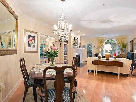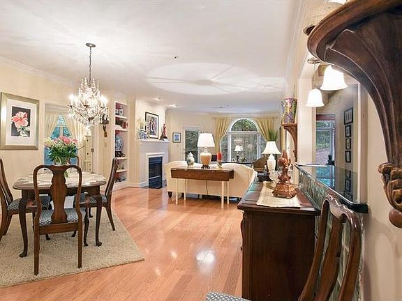 Gorgeous top to bottom renovation! Stunning kitch w/custom cabinets, granite, stainless appliances, brkfst bar + rm for table & chairs. Dining/living w/frplc, built-ins, palladium window and access to expansive terrace. Lovely master w/ sitting area. Master ba w/custom double vanity, granite counter, lrg spa tub,separate shower & huge closet w/ blt-ins. Additionally has hardwood flrs, 2nd bdrm, full guest ba, laundry rm, 2 parking spaces near elevator, storage unit, pool, tennis, lake and lush landscaping. No steps 1st level unit, blg has an abundance of guest parking.