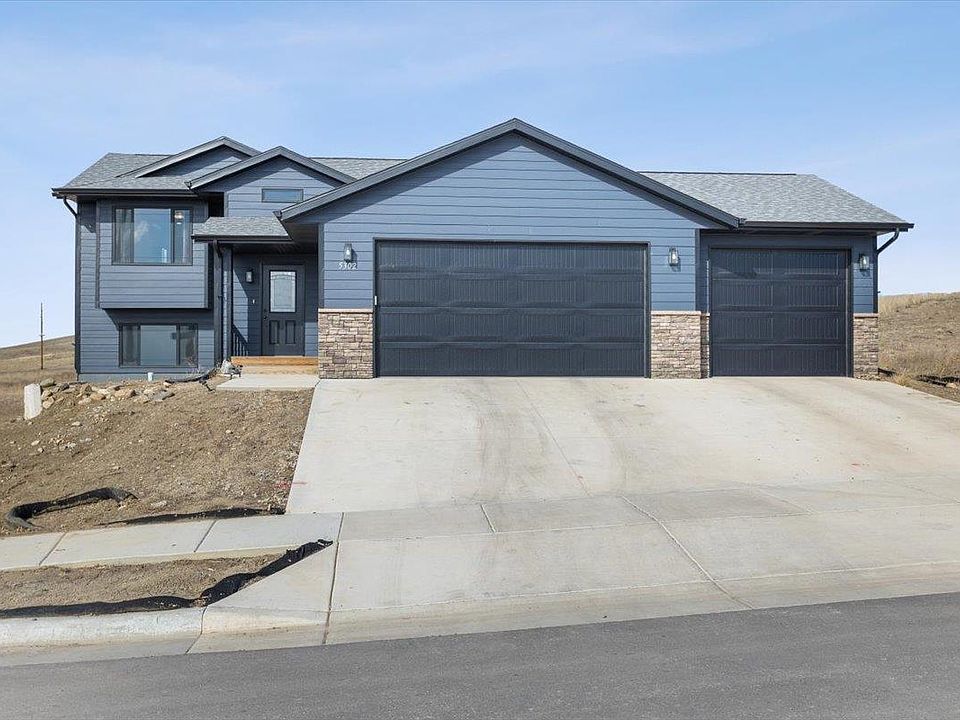 This 3 bedroom, 2 bath home with a 3 car garage on a corner lot is minutes to Ellsworth AFB. Built in 2022, this open-concept, split-level home is beyond the standard new construction. The bright kitchen with a large island opens to high ceilings, and the living room offers plenty of space and stunning views. Two bedrooms on the upper, main level including a primary suite with full bath and walk-in closet. The basement features one finished bedroom, while the fourth bedroom and family room are unfinished but dry-wall ready. A space is plumbed and drywall-ready for your 3rd bathroom in the basement. You won't want to miss out on this XL 3 car garage! Come and see this gem for yourself!