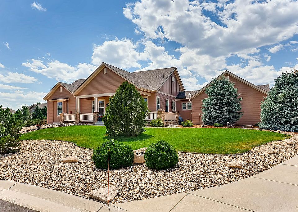 Custom ranch home w/ views of Pikes Peak. Cul-de-sac with just under 1 acre lot. The long driveway takes you to 3 car garage & RV area. Front porch spans the front & is a great place to sit & enjoy the views. Foyer opens to the great room, giant office, & formal dining room. 10ft high ceilings, neutral paint, arched doorways, wide hallways, & tons of natural light in every room. Kitchen has huge island w/ seating, pantry & solid surface counters. Eat in space in the kitchen that looks out to backyard & into living room. Huge laundry w/ exit to yard & garage. 2 large bedrooms w/ full jack&jill bath, half bath for guests & amazing master retreat w/ 3 closets! Master bath w/ soaker tub, double vanity & shower & amazing light! Pro-xeriscaped lot uses little water Set up for central AC. You have to see it to believe it! See 2 virtual tours! Douglas Cnty School lot to the east has no long term plans for build out. RV garage possible on lot. Main floor living at it's best!