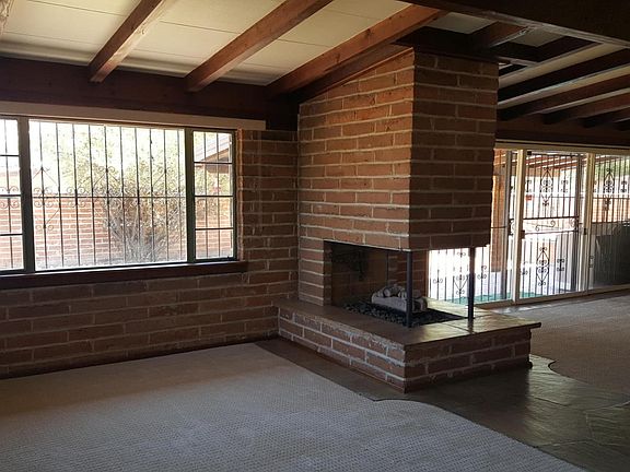 Back on market. Seller will accept/counter offers between $159,900 to $165,000.VA appraisal in at $165k. Exposed brick and open beam ceilings throughout the interior. Flag stone entryway that leads to beautiful retro open fireplace. New carpet and paint. New bathroom flooring and refinished tub and showers. Master bedroom with a master bathroom and walk-in closet. Knotty pine kitchen. Enjoy the outdoors from inside with a 15' glass wall (slider) that looks out onto the tongue and groove covered patio and the private courtyard. Enjoy swimming in your sparkling kidney shaped pool with mountain views.Classic ornamental iron provide security when away and a masonry privacy fence runs the length of the lot separating both neighbors. This home has cold A/C that was just serviced,2 sheds for e extra storage and horseshoe driveway for lots of parking. For anyone interested in dual cooling, the home is also set up to accommodate an evaporative cooler.