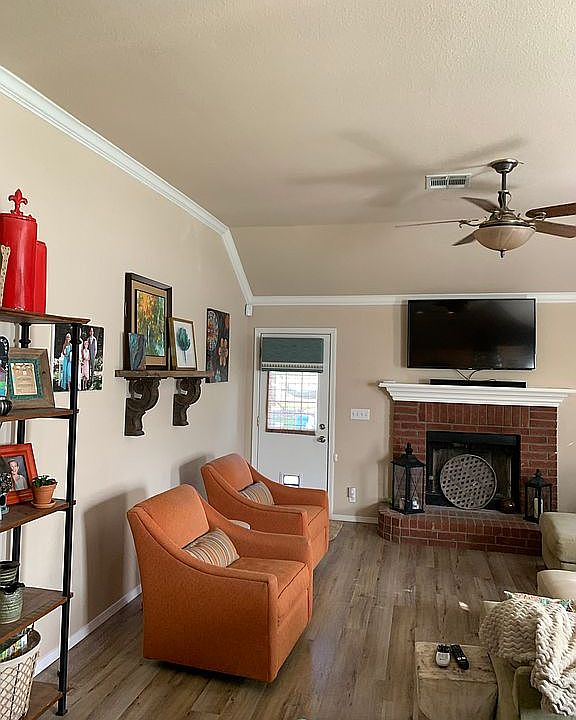 Jenks schools, 1 1/2 story brick home, large lot, low traffic, 3 bdrs on first floor with home office/2nd living room. Home includes a formal living room, 2 fireplaces, updated kitchen and eat in breakfast area. A game room upstairs could be a 4th bedroom as it's complete with it's own bathroom and cooling system. Close to Hunter Park with a greenspace behind property. Prof. Landscaping, sprinkler system and 10 x 12 shop.