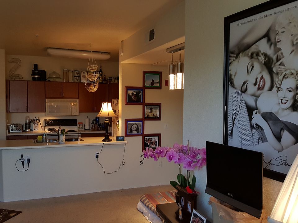Beautiful 3rd-Level POOL View 1-Br Condo with walk-in closet and large bathroom. One of the best views in the complex with vacation-like balcony and palm-tree surroundings. Camelback and Papago Views from the north facing front... Pool Views from that rear balcony side. Storage on the deck with walk-in Closet, Lrg Bath with Dual Sinks and Full-Size Washer and Dryer Included. Built-in Osmosis Drinking water with annual filter change and Maint. Great location next to Papago Park and biking distance to ASU and Tempe Town Lakes.
