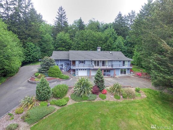 Gorgeous setting w/territorial views and overlooking your 4+ acres. Impeccably cared for by its original owner, this rambler w/daylight bsmt has it all. Main floor w/3 bds, living/dining combo and family room open to the kitchen. Full length deck along the front. Daylight basement w/separate entrance (ADU potential), living room, den w/closet, bathroom and plumbed for kitchen. TWO attached 2-car garages with workspace & tons of storage. This is the "breathing space" you've been waiting for!