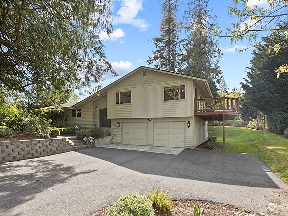 Perched on Everett’s coveted Boulevard Bluffs. This 3-bed tri-level features Puget Sound & Whidbey Views and over an 14,800+ SQ FT lot. Double door entry leads to welcoming foyer & indoor water feature. Soaring vaulted ceilings & West-facing gallery of windows fills the open plan great rm w/ views & natural light. Gas fireplace w/ floor to ceiling brick surround. Oversized view deck extends living & entertaining space. Kitchen island w/ breakfast bar facing sunsets. Custom cabinetry & pantry storage. 4-burner gas range. Spacious primary suite on main w/ walk-in-closet & ¾ bath. A/C for year round comfort. Lower level offers rec-rm w/ wood-burning fireplace & patio access. Unwind in the covered hot tub. Coveted Mukilteo school district.
