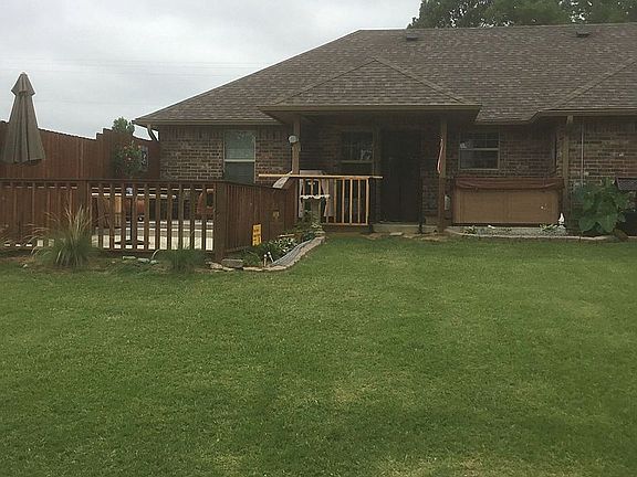 Call for a showing 8174089072 Beautiful home with tile flooring, beautiful kitchen with oak wood cabinets, stainless steel appliances, master bath with tiled shower, Raised ceilings, perfect backyard for family living and entertaining with covered patio, hot tub and large deck, fenced yard, lot of value in this home. Large walk in closet Master, crown molding, 2 hall closets.