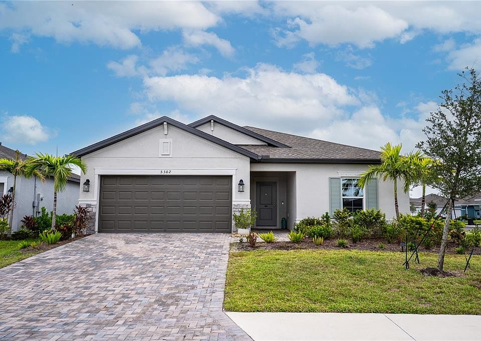 Welcome to 5302 Senza Trail, a beautifully upgraded home in the heart of Palmetto, Florida! This thoughtfully enhanced property offers much more than your typical new construction, with a range of premium features that add value and style. Starting with the professionally installed vinyl fence—a $10,000 upgrade—on a rare, approved corner lot, you’ll enjoy added privacy and curb appeal right from the start. Relax on the paved, screened-in lanai, perfect for enjoying the outdoors comfortably, and a feature that saves you thousands in future upgrades. Inside, sleek tile flooring flows seamlessly throughout the home, combining modern elegance with low-maintenance durability. The master suite, tucked at the rear of the house, includes a spacious walk-in closet, double vanity, and a tiled shower with a rimless glass door for a luxurious, spa-like feel. The additional bedrooms, located at the front, offering privacy and ample closet space, making this floor plan both functional and stylish. The open-concept kitchen and living area is ideal for entertaining, featuring stainless steel appliances, quartz countertops, and a contemporary backsplash that add a refined touch. Sliding glass doors lead from the living area to the lanai, creating a seamless indoor-outdoor flow. The dining space has been upgraded with a board-and-batten accent wall, lending a chic, contemporary aesthetic that makes every meal feel special. This home is move-in ready with additional enhancements, including ceiling fans, high-end appliances, custom shelving in the garage, a Ring doorbell, and under-cabinet lighting in the kitchen. The HOA fee covers basic cable, a well-maintained community pool, clubhouse, and fitness center, adding even more value and convenience to your lifestyle. Located in vibrant Palmetto, you're just minutes from the attractions of St. Petersburg and Tampa, with easy access to shopping, dining, and recreation. And for added peace of mind, the property is equipped with hurricane shutters and is situated outside the flood zone. If you're looking for a contemporary home that feels like a model, with upgrades that make all the difference, don’t miss out on this one-of-a-kind opportunity! Schedule a tour today!